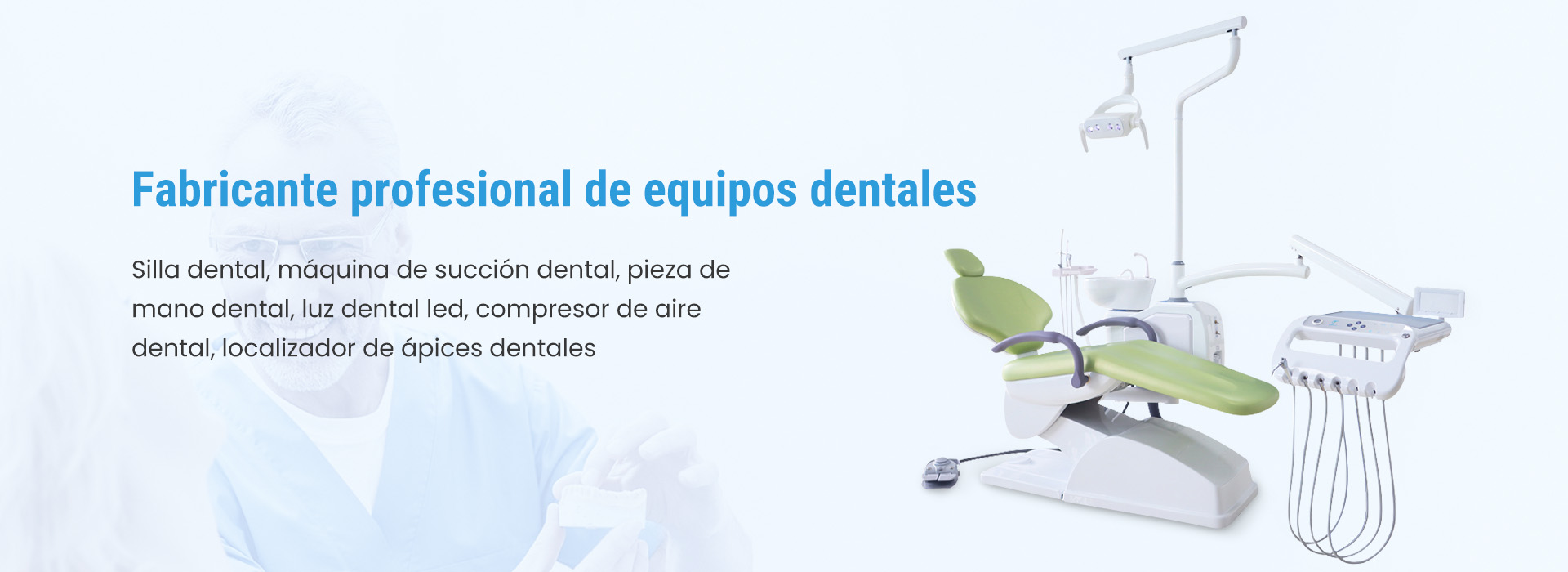 Los principales productos son: equipos dentales y suministros relacionados, como consumibles dentales. Convertir en el campo de los equipos dentales, seguimos explorando e innovando, silla dental, unidad de carro dental, unidad de succión dental, pieza de mano dental alta y baja velocidad, luz dental LED , Luz de curado dental, localizador de ápice dental, jeringa anestésica dental, compresor de aire dental