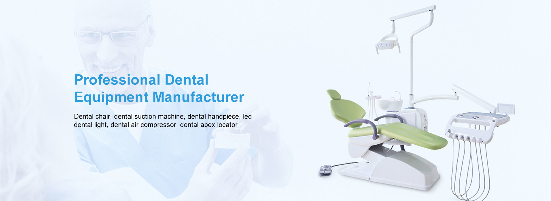 The main products are: dental equipment and related supplies such as dental consumables.Delving into the field of dental equipment, we keep exploring and innovating, dental chair, dental cart unit, dental suction unit, dental high and low speed handpiece, LED dental light, dental curing light, dental apex locator, dental anesthetic syringe, dental air compressor